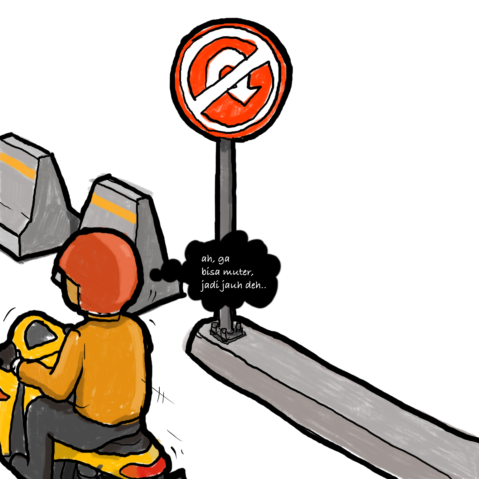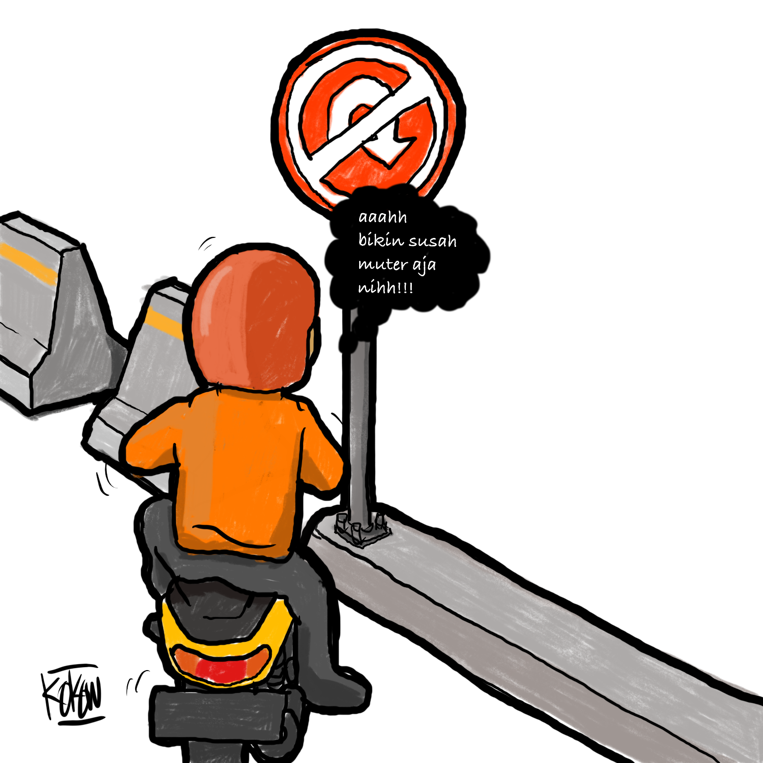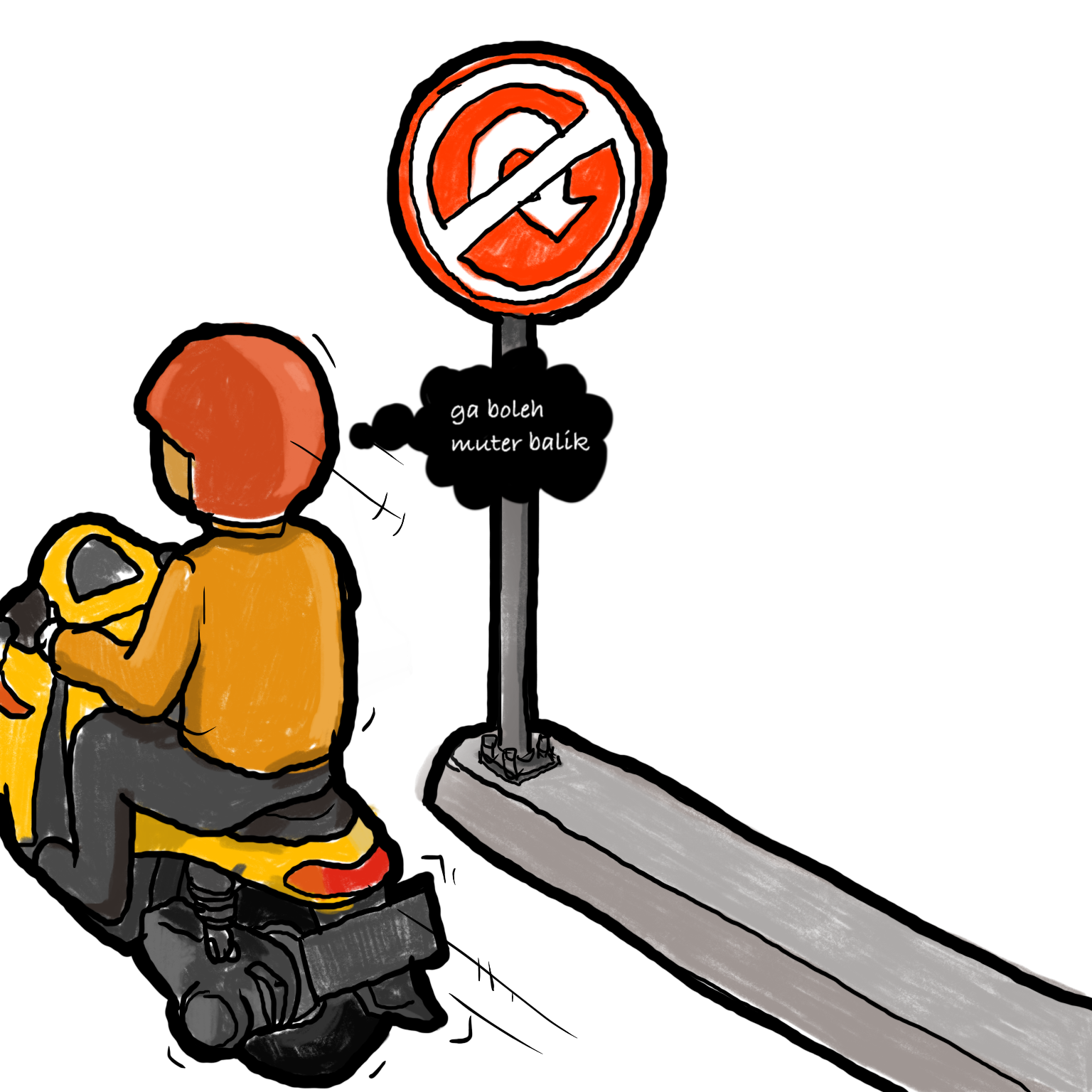 ..and this is what happen to some people who don’t care anything but themselves. Eventhough the sign said it forbidden to take a u-turn, and there are addition of road block, they still tried to find a way to get through. And if there is a rider who can get through this one, others will follow the act. This is what happen to out society, they seems to easy to imitating undisciplined act.